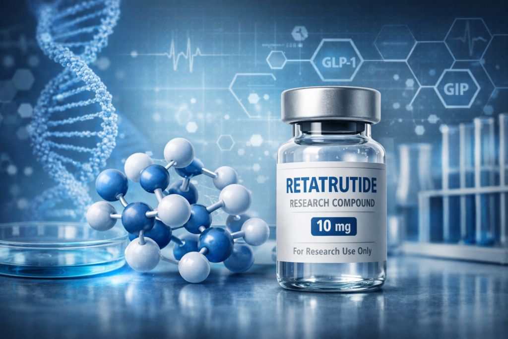Our retatrutide research compounds are sourced and prepared with an emphasis on laboratory standards and research integrity. Each product is clearly labeled for research use only and is accompanied by detailed product information to support responsible handling and storage in research environments.